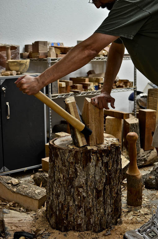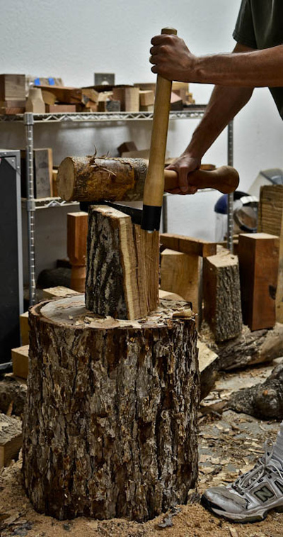 Perhaps you wish to add draw bore pins to a table. Using split wood will yield dowels with straight grain and produce a strong mechanical fastener. Also, using split wood to turn a mallet would result in a stronger, more durable tool. Or perhaps you wish to build a joint stool from a special tree.