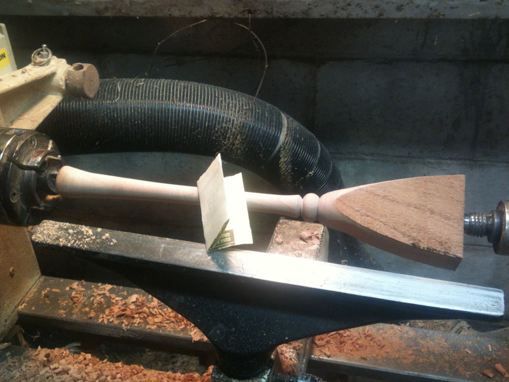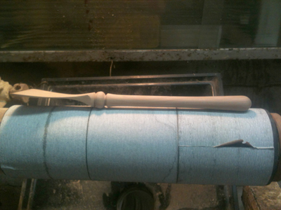 I put a bead at the base of the spatula and taper the handle and sand. I used the same sanding drum I showed you in
