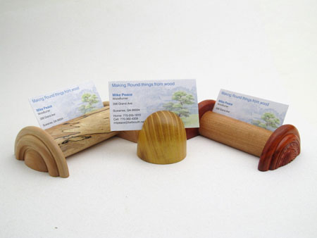 These are some business card holders I turned. The center one is a one piece business card holder of osage orange. The other two are made of three pieces.