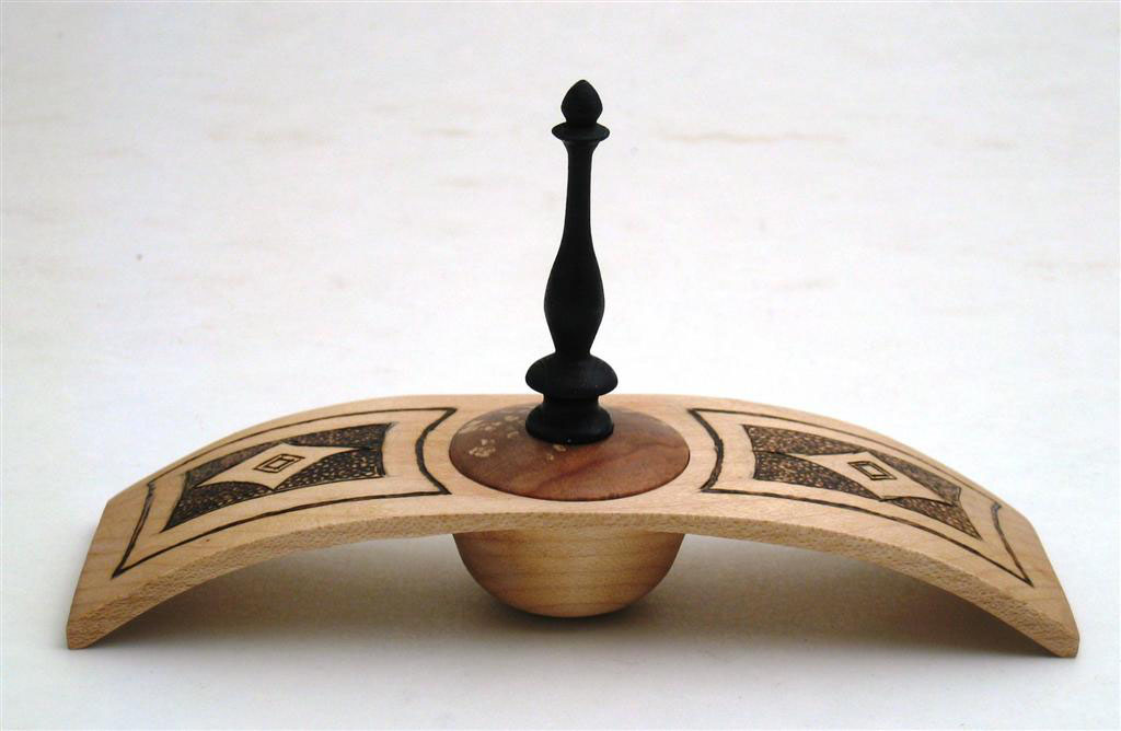 I turned this from a piece of maple scrap about 2 1/8" x 1 1/8" x 7". The lid is spalted dogwood with a cherry finial dyed with india ink.
