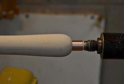 I began by using a pipe cutter to cut a ferrule from a section of copper pipe. The ferrule length, in this case, is 5/8". I also used the de-burring tool attached to the pipe cutter to smooth the inside edge of the ferrule. The ferrule provides a band that holds the wood fibers in place, thus reducing the chance the fibers will split during the tool’s use.