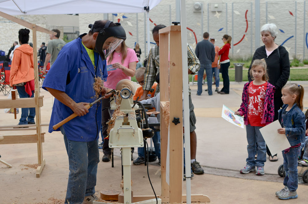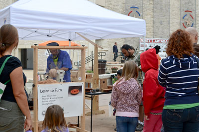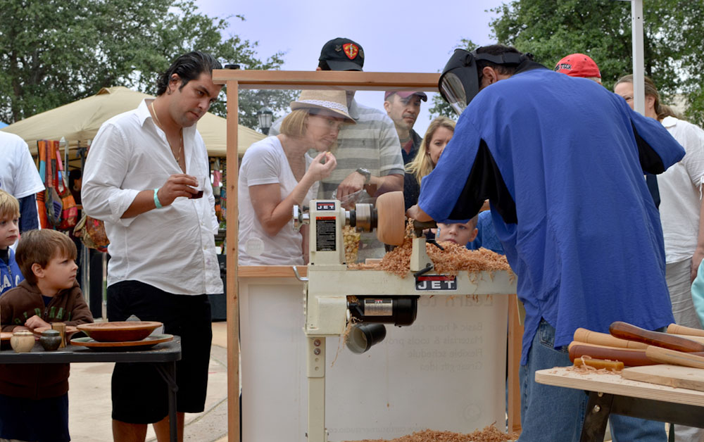 I was asked again this year to demonstrate wood turning at the festival. This year, I was given a booth space prominently situated near the live music plaza, where we drew large crowds throughout the main day of the festival.