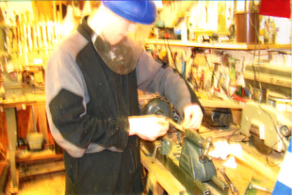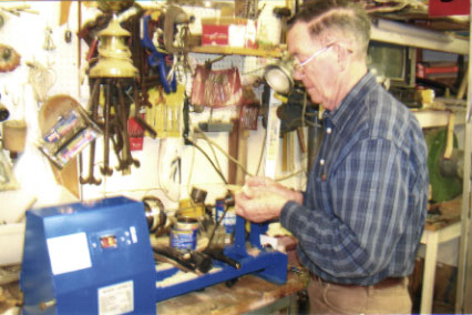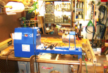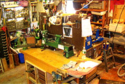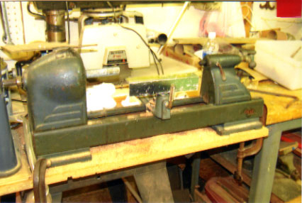 In the beginning I had just a Delta wood lathe in my woodworking shop. It wasn't long before I optained a Rand lathe and a vintage Sears & Roebuck lathe. I modified The latter two by cutting bed length to mini size and adding a 3/4 inch pipe to the live end of the Sears lathe and a mini chuck to the Rand lathe. By doing this we were able to secure the pen mandrel between centers. Chris, one of my fellow Calvary turners, brought in a Grizzly mini lathe which made a total of 4 pen lathes for our Saturday sessions.