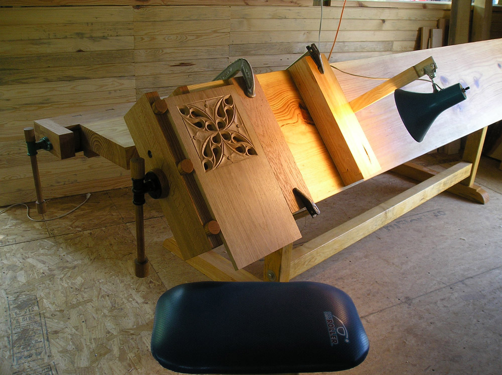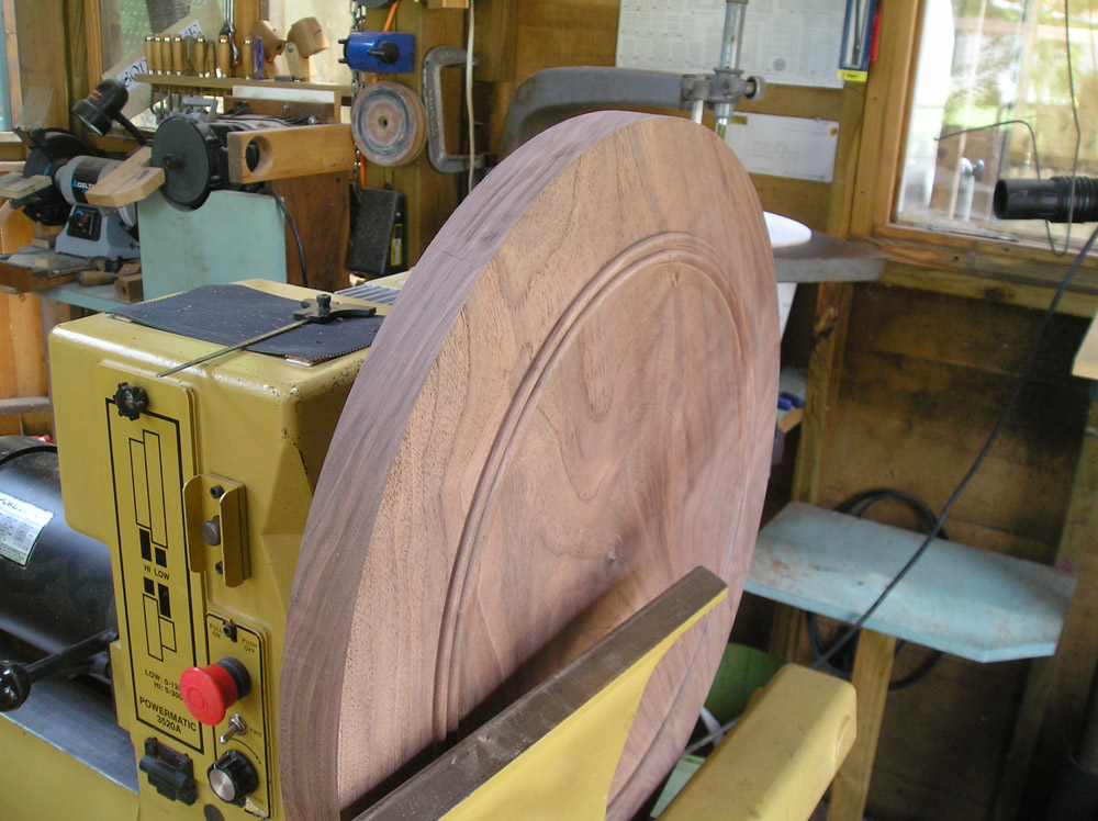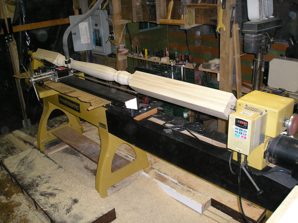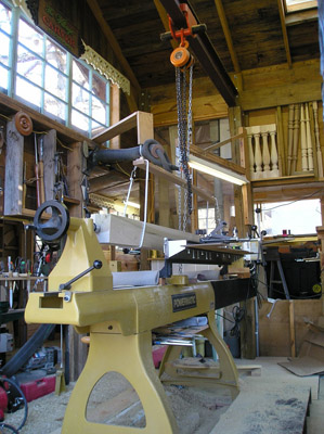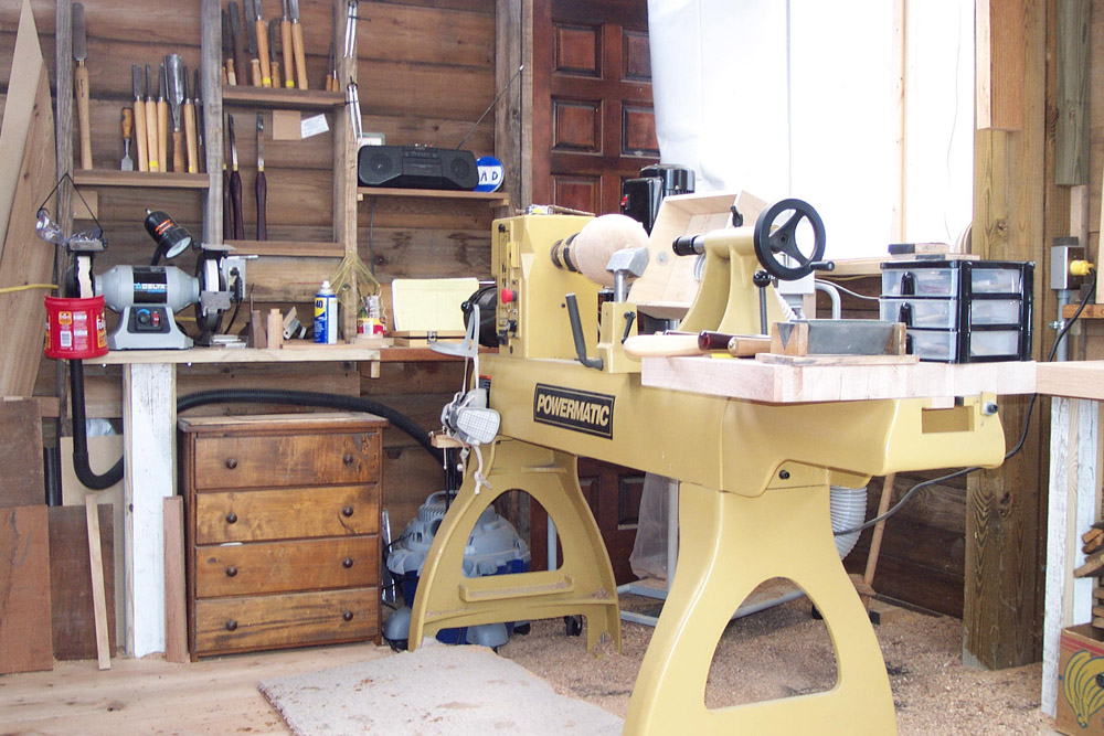 I specialize in carving and turning and like to combine the two when possible. My shop is 14x14 with a 10 foot ceiling. It also has an overhead trolley system.