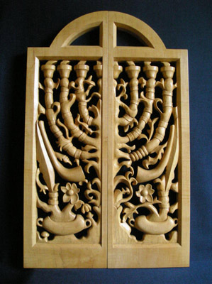 One of my recent projects was a set of 50 Torah Rollers that I made for the Christian Heritage Foundation. They have collected a complete set of the books in the Old Testament on scrolls. These scrolls were housed at the Creation Discovery Museum in Katy, Texas and featured on TBN. You can check it out on You Tube. The medallions are 20" in diameter, and made of Crotch Walnut.