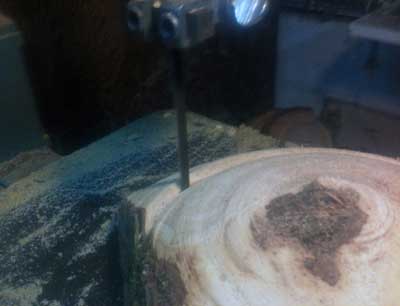 I split them on the bandsaw to get the diameter squared (same length and diameter). Normally I would grab a disk of the appropriate size and draw a circle with a marker to get it round before putting it on the lathe. Not this time. I was in a hurry and so I decided to just put it on the lathe the way it was. I could always round it and rough turn the bowl from a square piece.