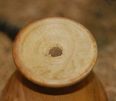 Now for the problem. The hole in the top is ragged and has threads cut into it from the chuck. I have tried using the drill press with a drill bit that is larger and it drills off center more times than not. I tried drilling on the lathe but didn't have a way to center it. What I needed was a tapered bit that would center itself and then drill a clean and larger hole.
