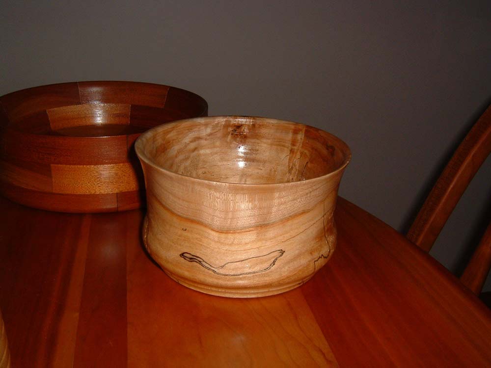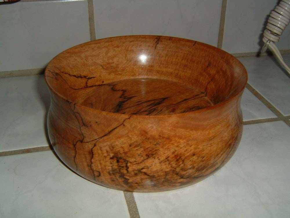 This one is spalted sycamore. All bowls are finished in danish oil and then waxed.