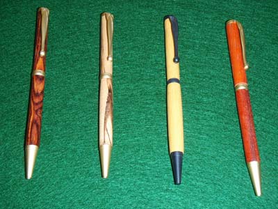The pens shown above (left to right) are Cocobolo, Zebrano, Yellowheart and African Padauk.