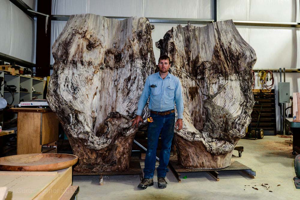 Here are a couple of pictures showing Brandon Berdoll standing next to a large slab & log.