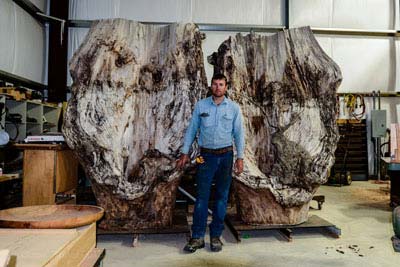 The Berdoll Sawmill & Furniture Company handles extremely large material, often with very unique figure. When I say "large," I am referring to 20' long by 7' (yes, feet) in diameter trees.