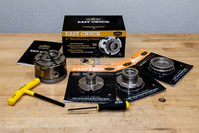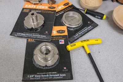 Easy Wood Tools provides several types of optional jaws. They range from long jaws for gripping tenons of about 1/2" to large jaws for gripping blanks up to 24" in diameter and tenons up to 3-1/2" or expand into recesses of 4-1/4".