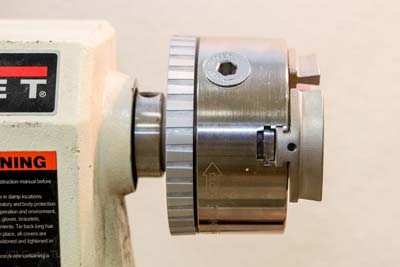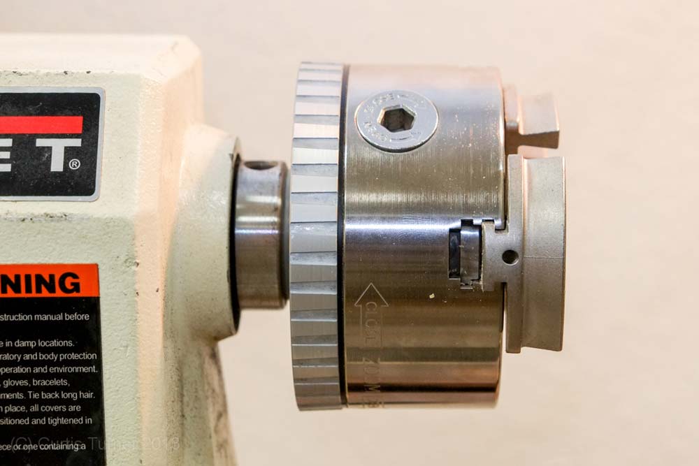 Typical jaws are attached with screws to the chuck body. The Easy Chuck jaws slide into the chuck body and are held in place by the chuck. While it is not the same, it is somewhat akin to a dovetailed fit. The jaws are case hardened and nickel plated providing an incredibly strong hold. While researching in preparation for this article, I spoke to the folks at Easy Wood Tools about the strength of their system. They told me they broke several testing fixtures without damaging the jaw or snap lock mechanism. They also told me they "...tested a single Snap-Lock mechanism to over 5400 pounds of linear force and the chuck and jaw still worked fine."