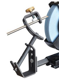 (pictured above). This jig allows for the quick setup and sharping of bowl and spindle gouges. This is a must have item in my opinion. It simplifies the task of sharpening of fingernail grinds and gouges with swept back wings. This jig has an adjusting arm (see photo) that in conjunction with the Vee-arm allow you sharpen tools with a wide variety of bevel angles. The included instructions explain how best to set up this jig.