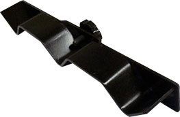 (above) attaches to the Vee-arm with a simple twist of a knob. This jig offers a method for grinding a symmetrical edge on the skew. Oneway states this jig produces a "virtually flat" bevel. The tool handle is placed in the off center pocket of the Skew jig and the Vee-arm is adjusted to match the primary bevel. The short point of the skew will be on the same side as the tool handle. That is to say, tool handle in the right pocket then the short point will also be to the right. This jig like the others speeds sharpening by presenting the tool at the same skewed angle. It also takes on more control of the tool minimizing the twist or rolls that can be introduced by free hand grinding.