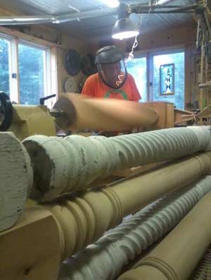 In the spring of 2012, one of our high-end local general contractors, Scott Vogel, approached me for some help renovating his contracting and real estate office building. He needed help with repairs to the existing porch columns and turning two additional new columns to provide the additional support needed for the sagging apartment floor above. The white clapboard four-story building, originally built in the 1800's as a home on the steep hill up from the harbor in Castine, Maine, was purchased in the late 1800s by Scott's grandfather. He added on an octagon tower, and remodeled it to become his real estate office on the ground floor with two rental apartments in the upper floors. Scott's grandfather also owned the Castine Inn immediately next door up the hill, as well as several other businesses in the town.
