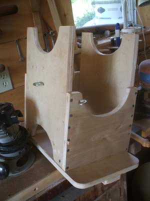 Because these posts have six bines, the Masonite template that will be attached to the post for positioning the cuts is marked with the six points (as in photo). A compass set to the exact radius length, will "walk" (mark) around the circle establishing six equal parts.