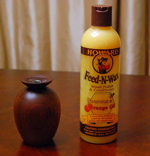 for years and have used it to bring back the luster on all wooden furniture. I was browsing YouTube, looking at woodturning videos, when I ran across a tri-box demo where the turner used Feed-N-Wax for a finish. I got my bottle and started reading the directions, which I hadn't read up until then. I'm a guy. Why not?