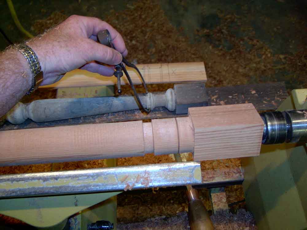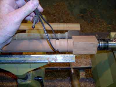 Using the story stick, lay off the "high points" of the turning. These are the edges of the beads, coves, and shoulders.