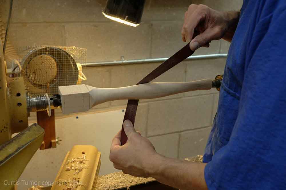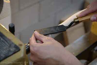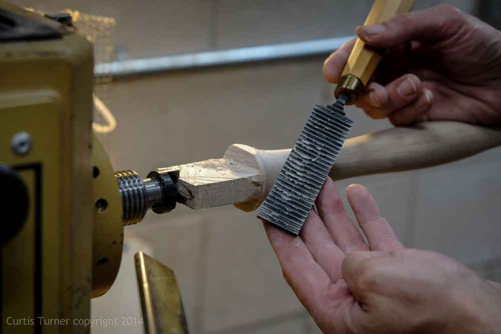 I find it helpful to stop frequently to check the progress of the handle. I continued to refine the shape of the handle slowly working the length of the handle.