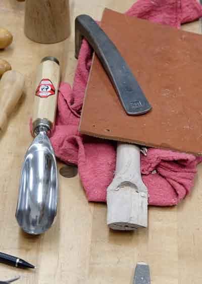 Once I was satisfied with the shape, I needed to smooth out tool marks and blend the curves on the handle. This can be accomplished in several ways. I found using sand paper and a spokeshave to be very effective.