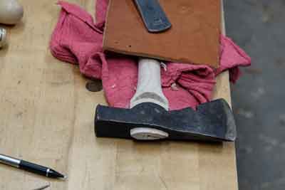 The last step before wedging the head is to use a method referred to as hanging the axe. This is done by seating the head by hand as firmly as possible. Then hold the handle with the head near the ground and hitting the end of the handle with a mallet until the head is drawn tight onto the handle. This sounds counterintuitive, but it really does work.
