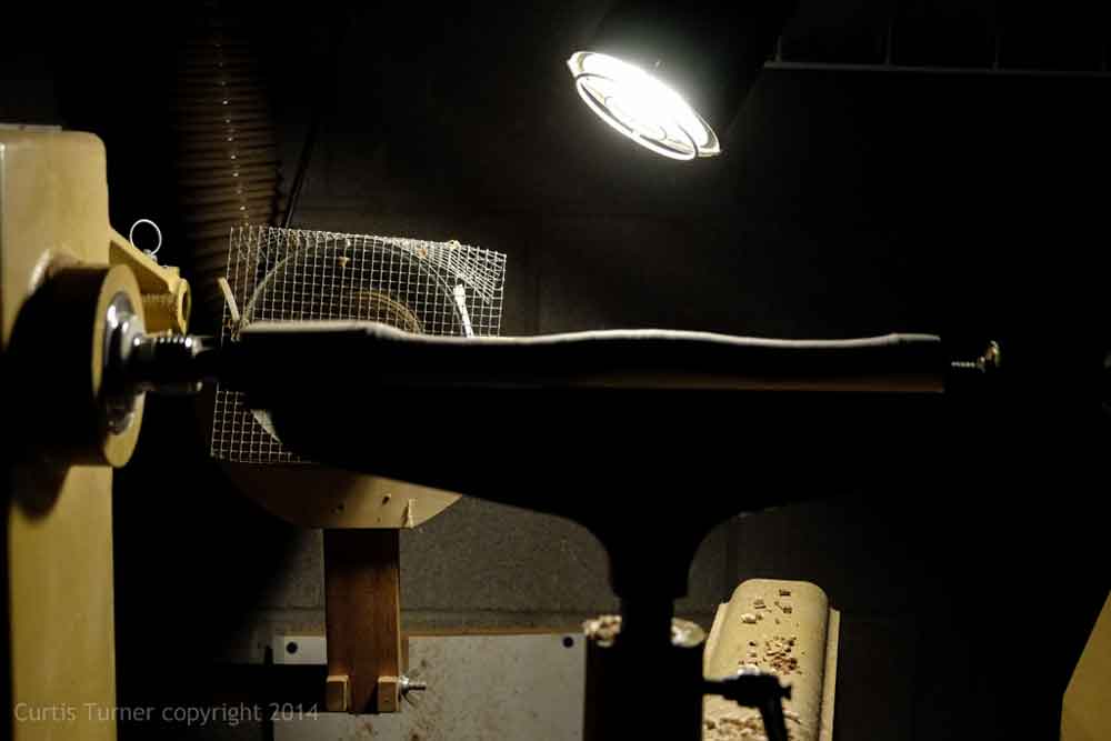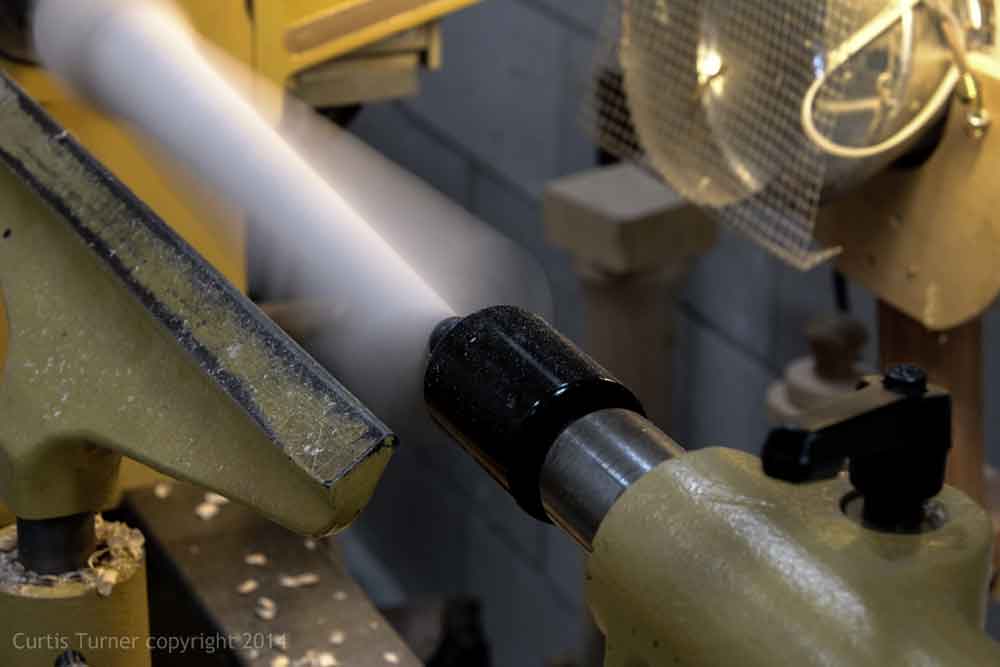 This off center method requires the turner to keep an eye on the ghost image as he turns. You can get a sense of the ghost image in this photo