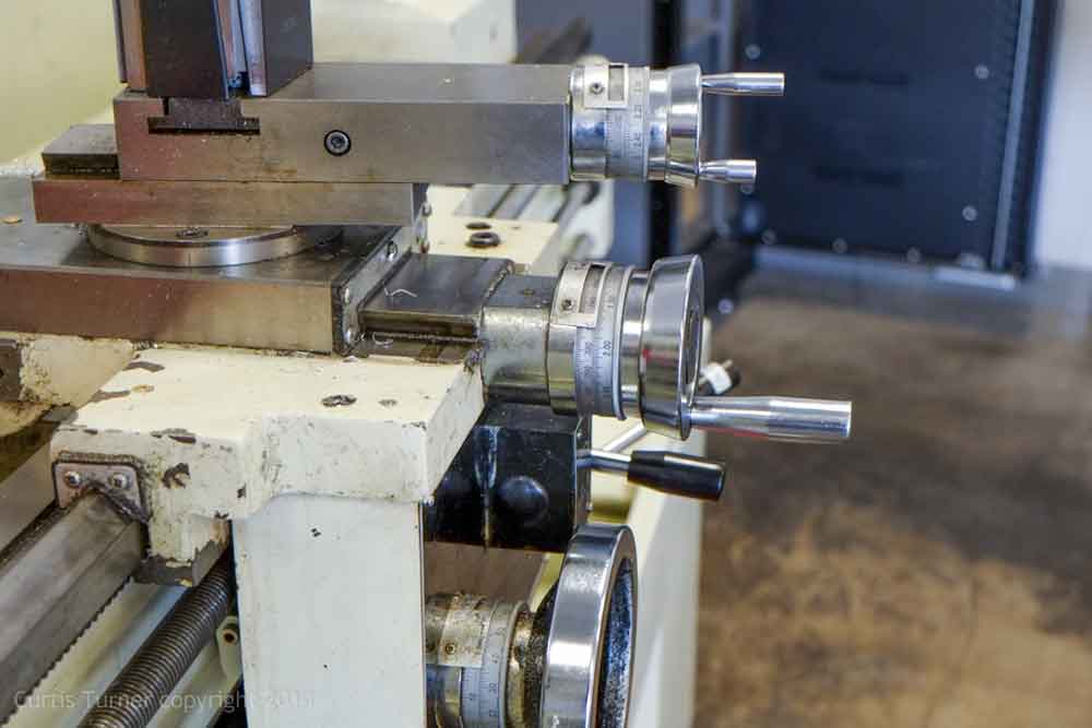 The metal lathe has many of the same elements as a wood lathe. However, it is also vastly different. The obvious differences are all the dials and controls (see below).
