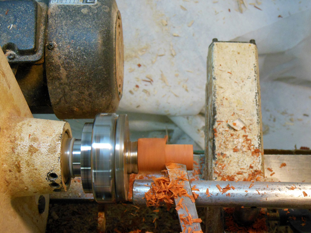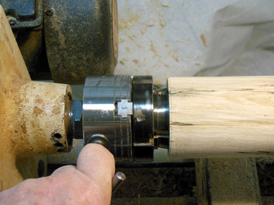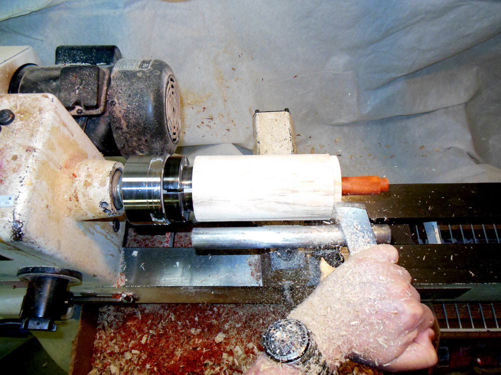 I then put a chuck on the lathe and mount the blank in the chuck (Figure 7).