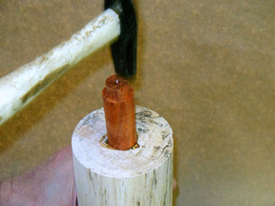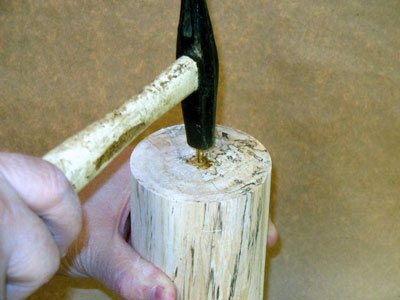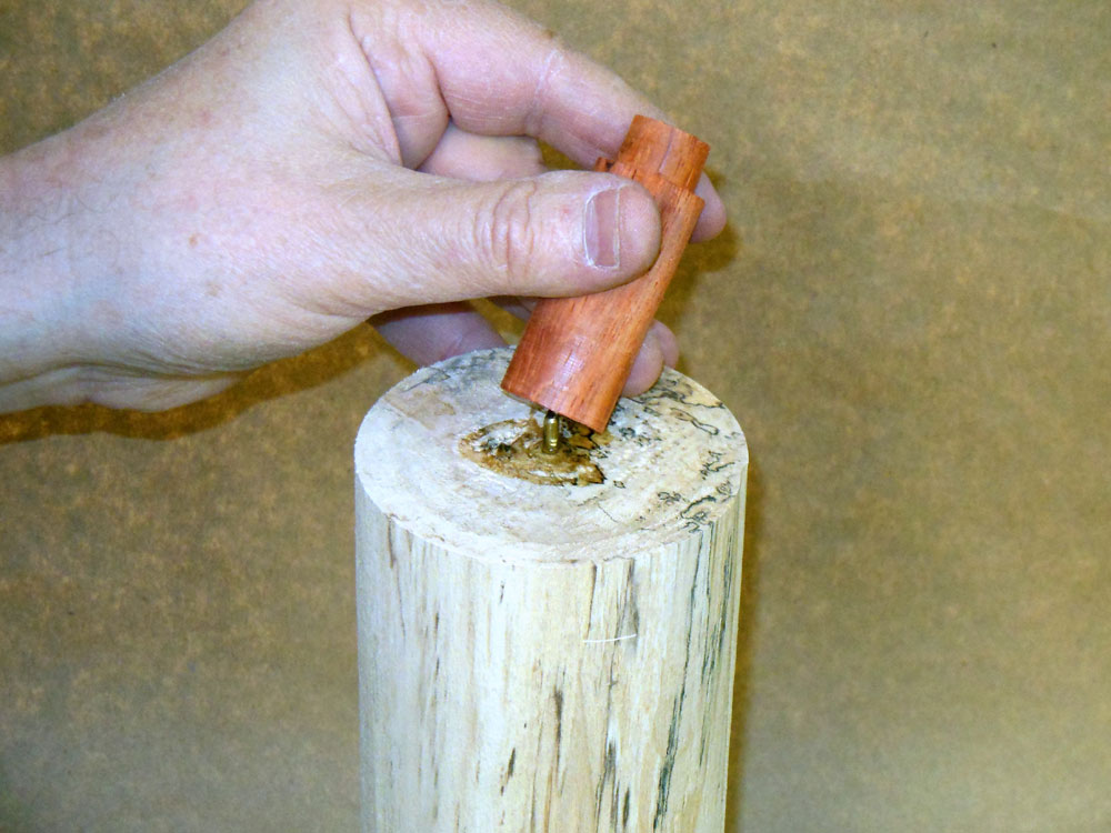 I put some glue on the hole in the body blank, and a little on the pin itself, and tap the pin into the body blank (Figure 17).