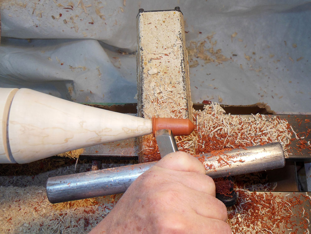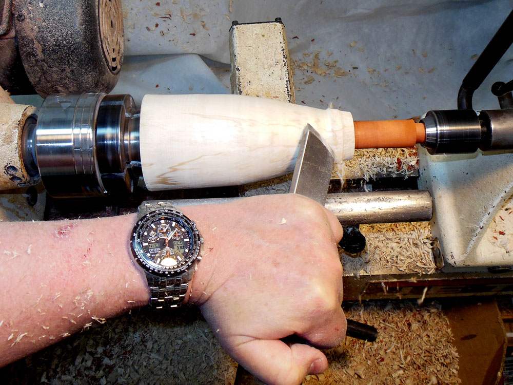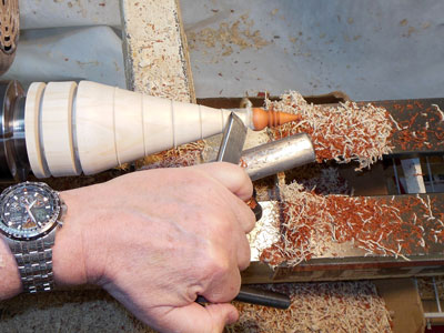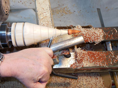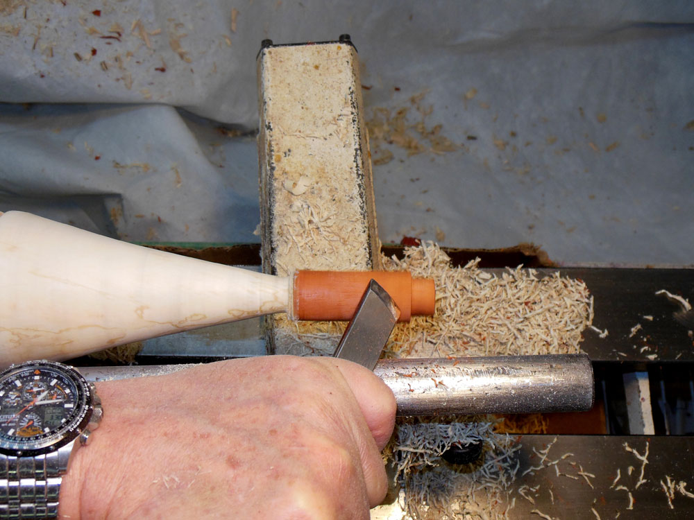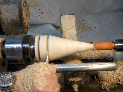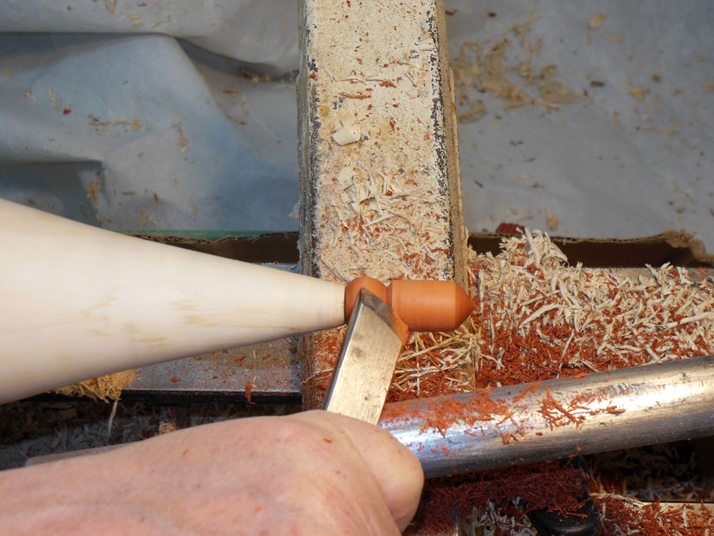 I then use the skew to shape the cone down the body blank (Figures 23 and 24).