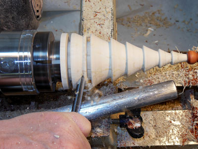 The last step is to part off the tree (Figure 48); I'm using a 1/16" parting tool here.