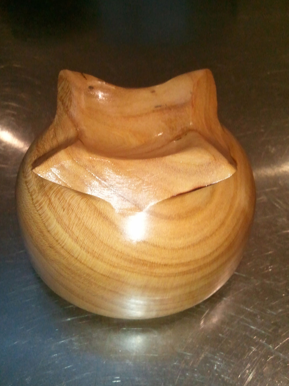 I have always been fascinated with wood turning. Five or six years ago my wife and I were watching a turning demo and I told her about my fascination and she said buy a lathe. I got a 50’s vintage Craftsman and spent most of my time either swearing at it or fixing it. I didn’t make anything worthwhile so I sold it. Four months ago I got a good deal on a refurbished lathe so I dove back in.