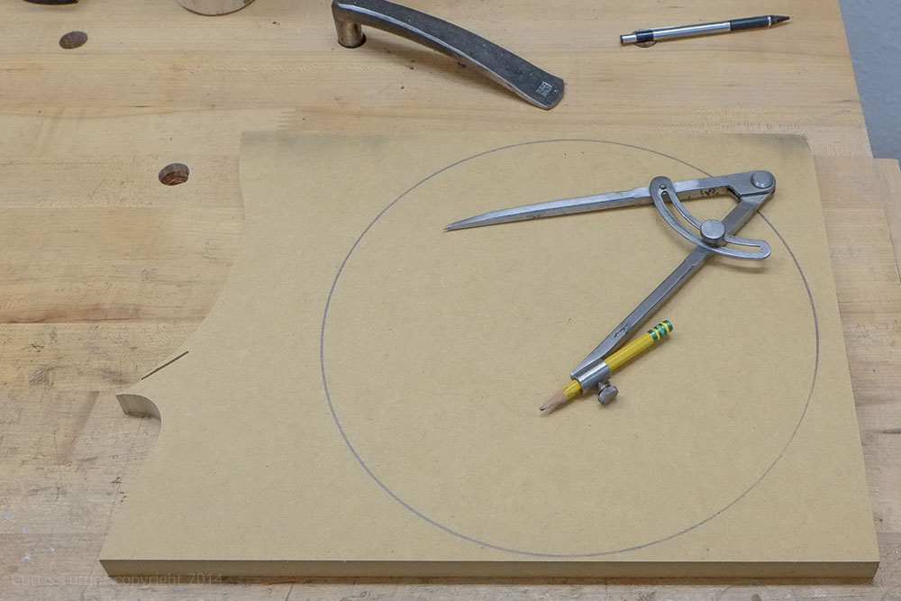 I used a scrap piece of MDF to mark out an 11" diameter circle (above). Side note: I never thought I would "like" a compass. I purchased
