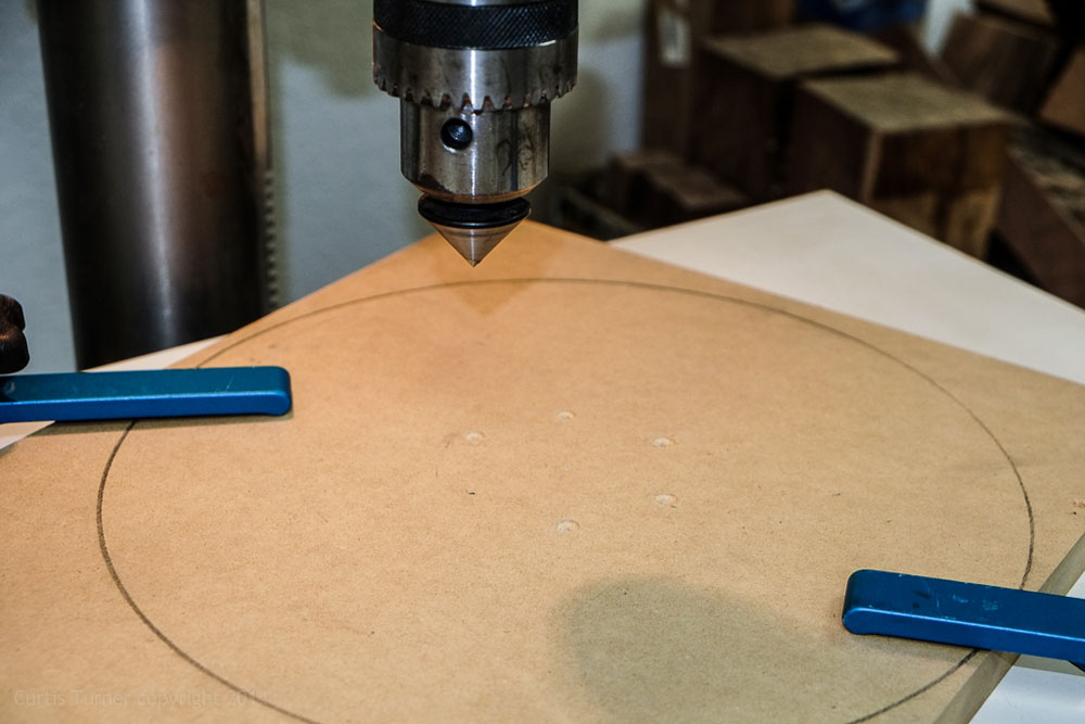 Next, I marked out the holes for the faceplate screws. I then counter bored the holes to remove some excess MDF from the screw hole.