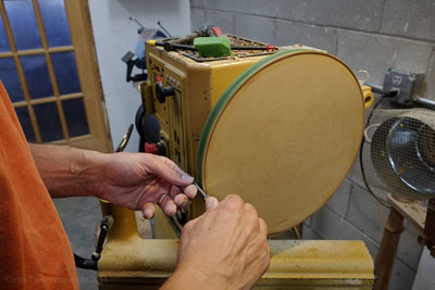 Also, if the wheel is rotating in reverse, use the tailstock and lock the faceplate hex nut to prevent the faceplate from unthreading and dismounting from the lathe.