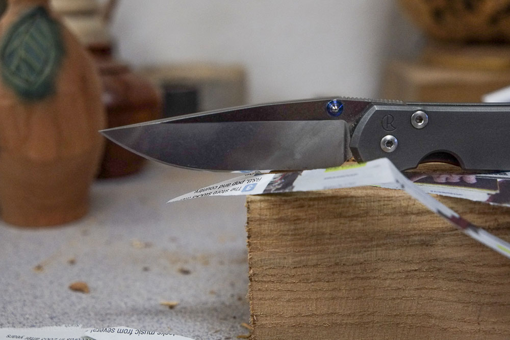 I gently applied pressure and moved the knife sideways across the wheel attempting to spend an equal amount of time stropping each section of the blade. I then rotated the knife handle to the left and followed the same procedure. I worked both sides of the edge several times. The goal is to polish or refine the edge at a consistent angle. You will need to be careful to avoid rolling the edge which creates a rounded (dull) edge. This will take practice on your part.
