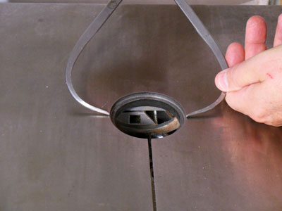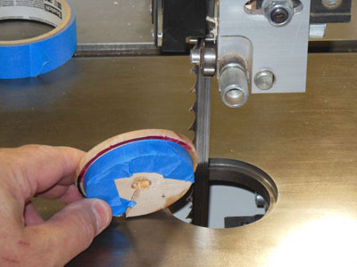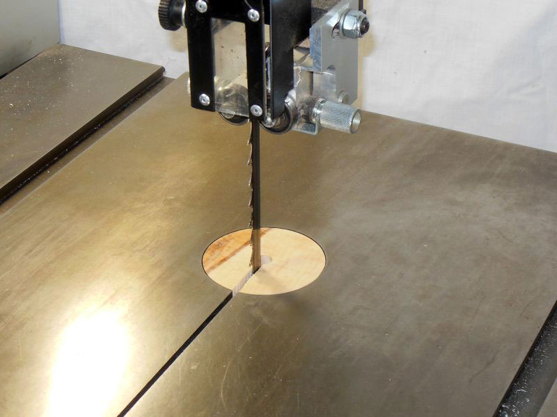 Take the separated insert back to the bandsaw, and put it into the table opening (Figure #32).