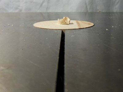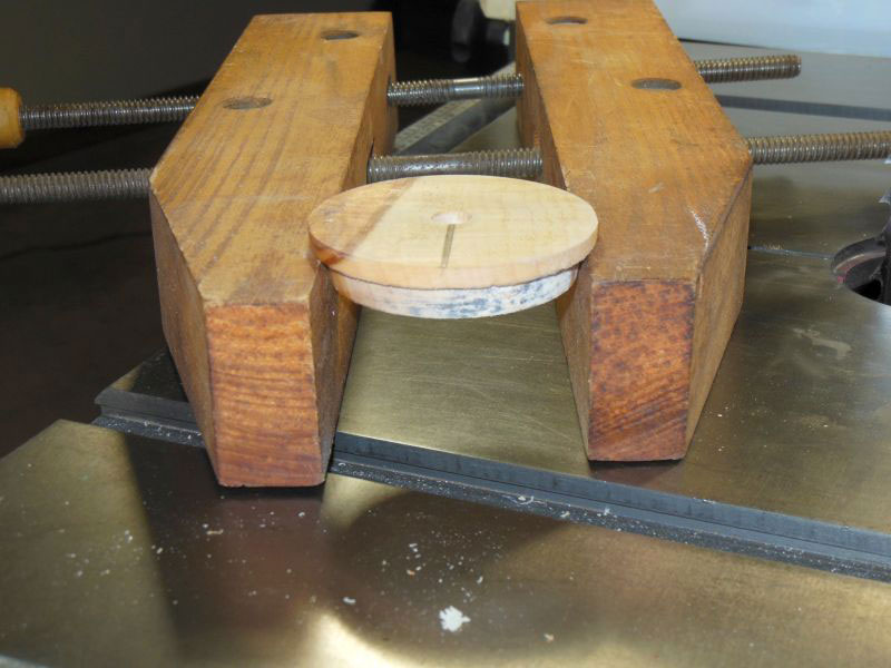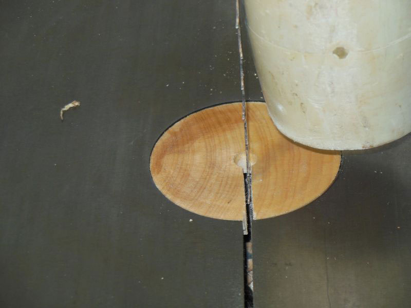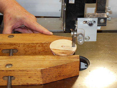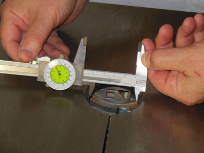 Back at the bandsaw, set a pair of calipers to the diameter of the larger (topmost) opening in the bandsaw table (Figure #10).