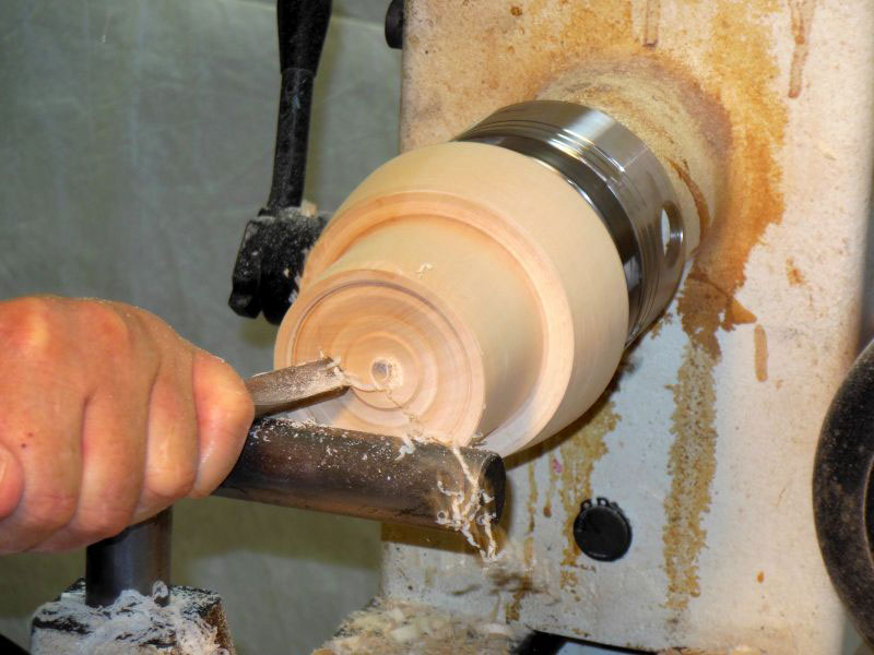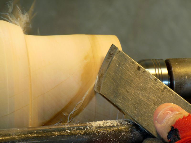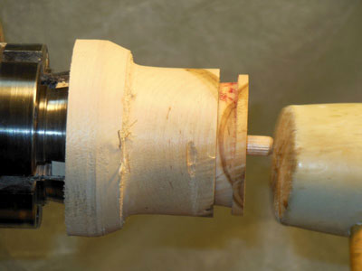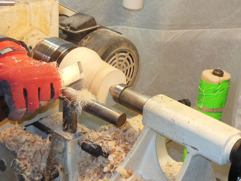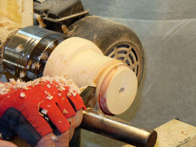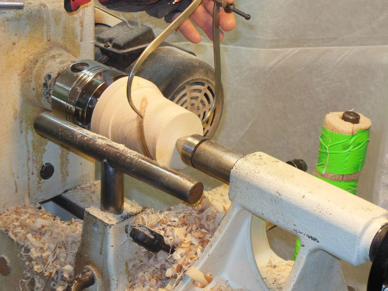 Turn the end of the blank to the outer diameter, and then extend this size some inches to the left, to get a comfortable length of wood to work with, as shown in Figure #13.