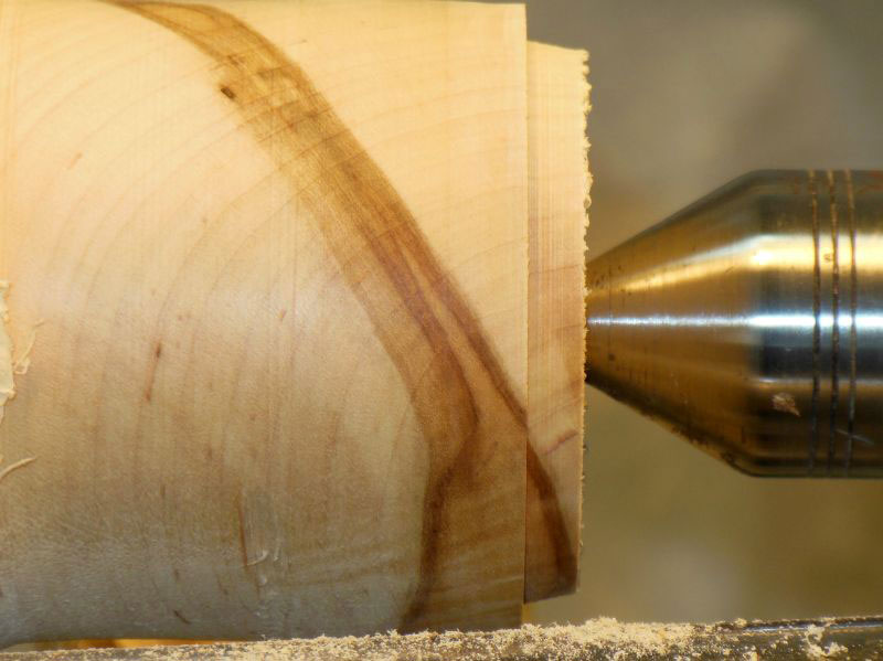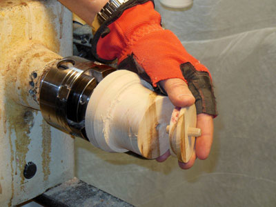 Remember that hole you drilled through the end of the blank? The separation will come sooner than you think.
