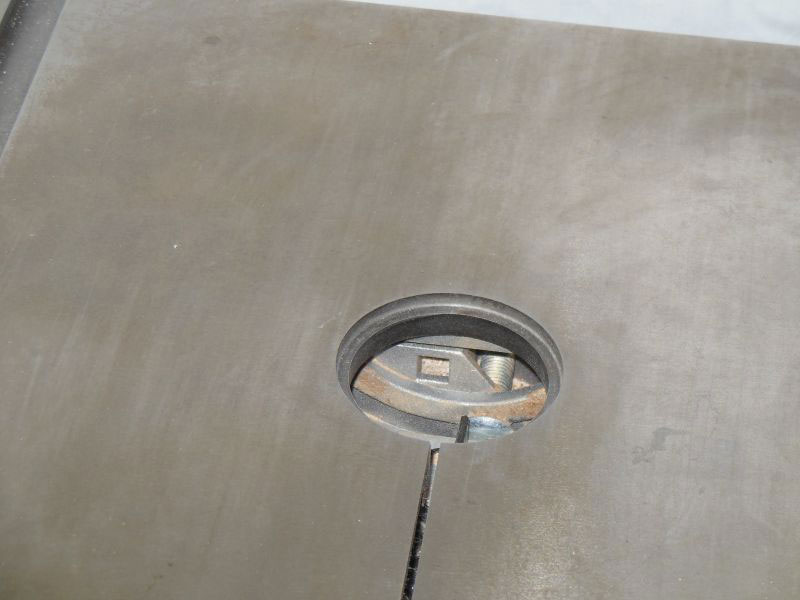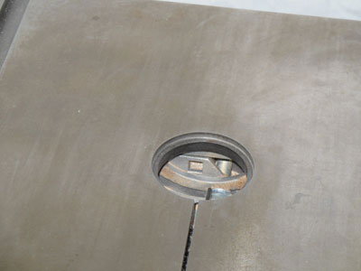 Back to the bandsaw….the insert won't drop fully into place now. Use a mallet (or your fist, but beware of the blade teeth) and tap the insert down flush with the surface (Figure #50).