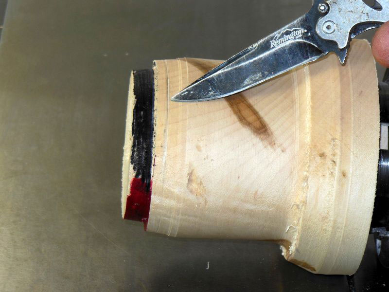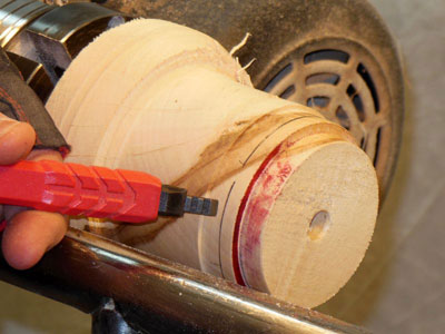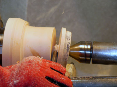 Take the work piece back to the lathe and remount it – you're ready to cut the insert free of the blank, at the line you just marked (Figure #28).