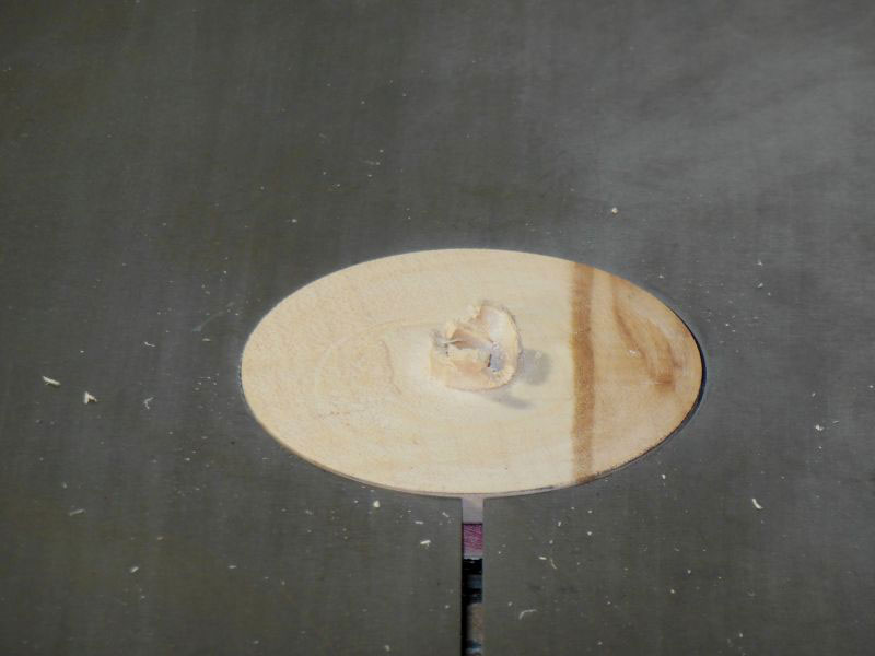 I suggest dousing the top and bottom of the insert with thin CA glue to strengthen the wood (Figure #38).