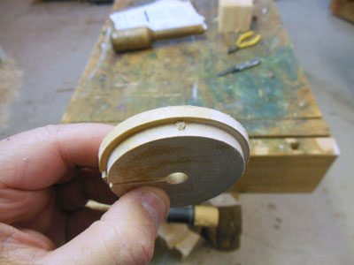 (Note: as shown below in Figure #37, you may wish to make a jam chuck to finish the surface of the insert. I didn't find it helped all that much, and decided to stick with the hole-and-dowel method.)