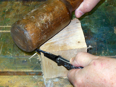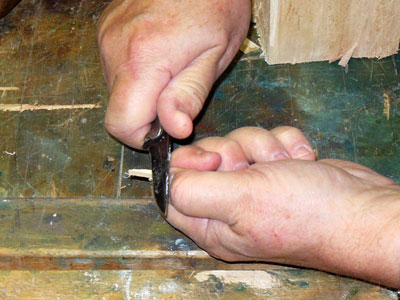 Whack off a small splinter of wood, along the grain, from a scrap (Figure #46).