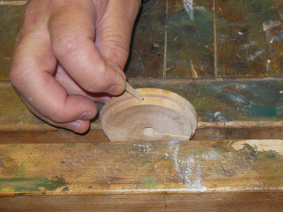 Use a small knife to whittle the splinter down to a point that will just fit in the hole drilled into the insert (Figure #47).
