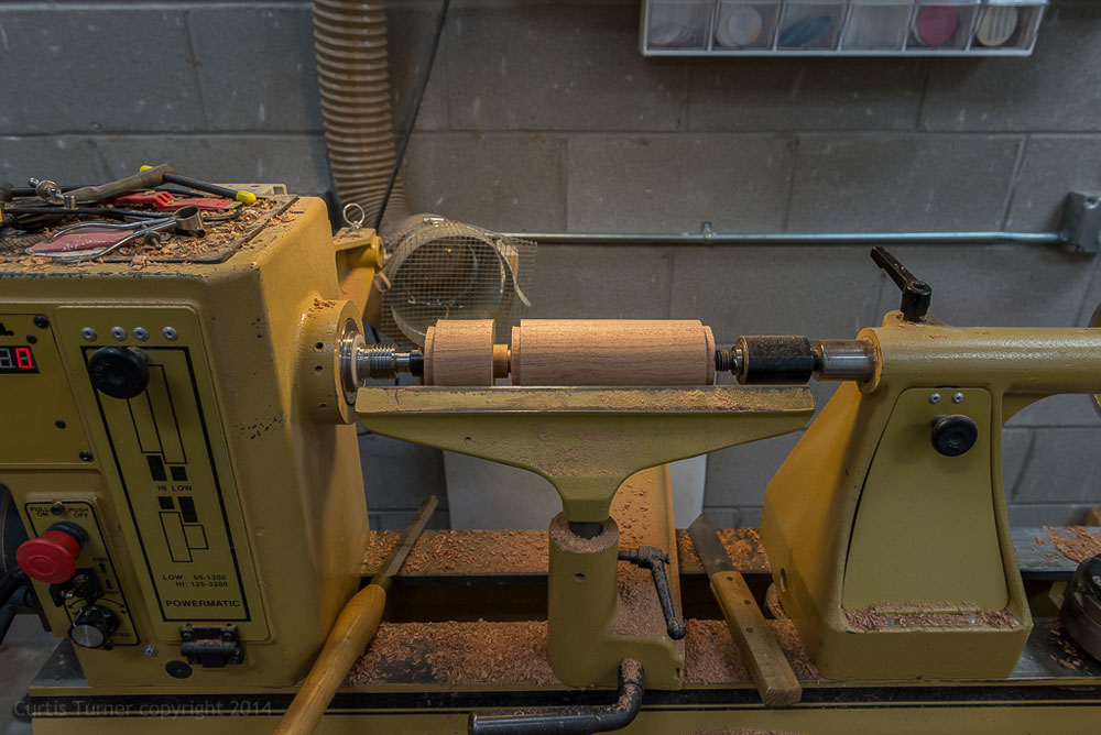 I then turned the blank to round and drew my lines again. Then I used a parting tool to mark off the cap