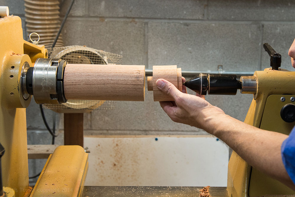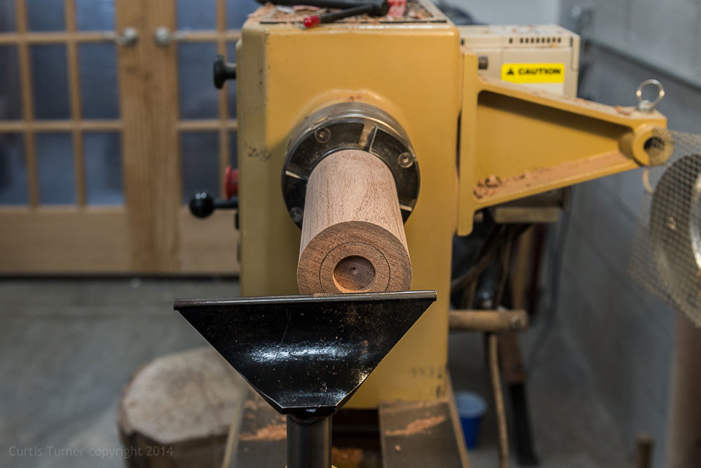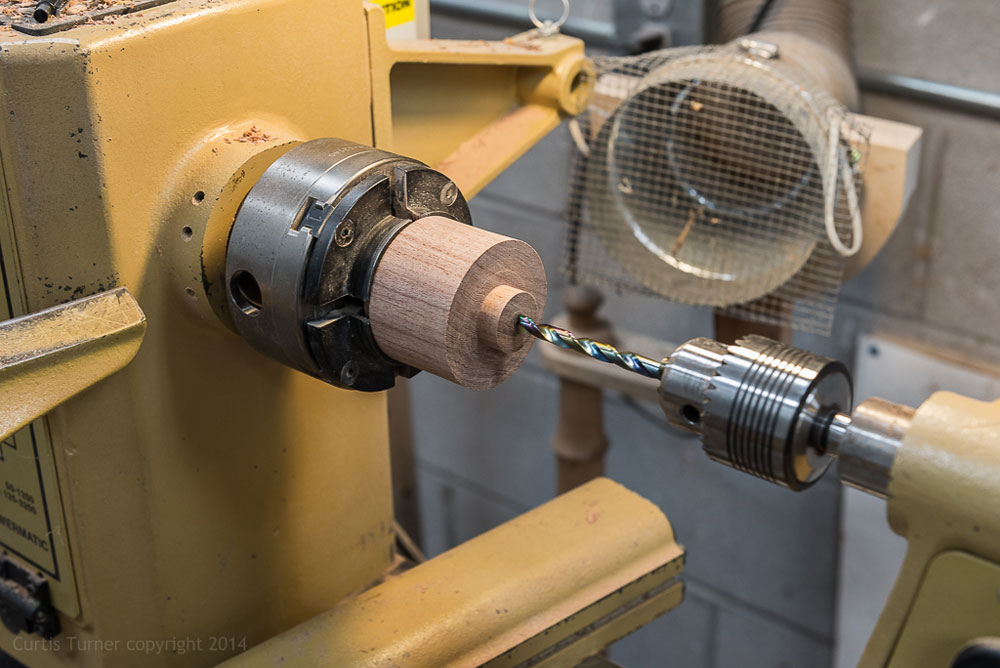 Next, I mounted the body and drilled a hole half way through the center. I then reversed mounted the