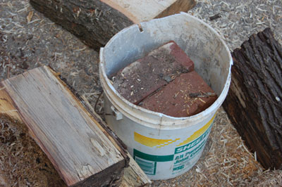 I used a jigsaw to cut a cove in the top of the bucket to hold the wood. I use the Sheetrock mud bucket